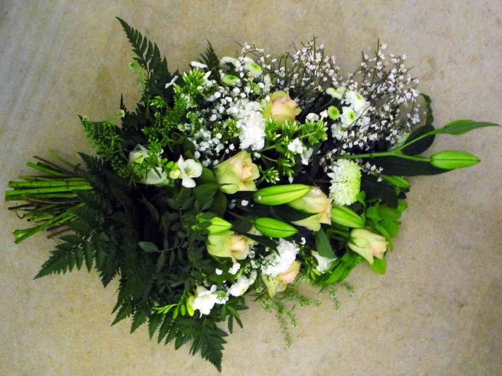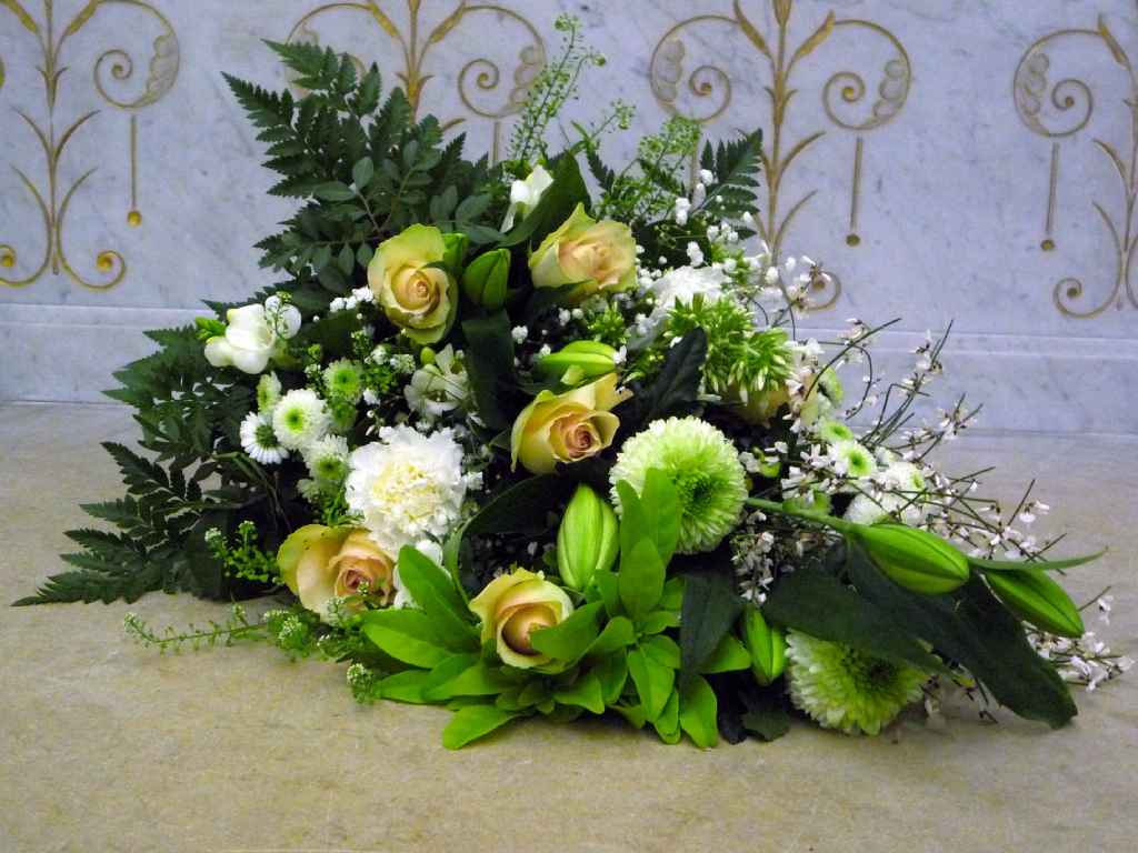 Coussin long : lys blancs, roses ton crème