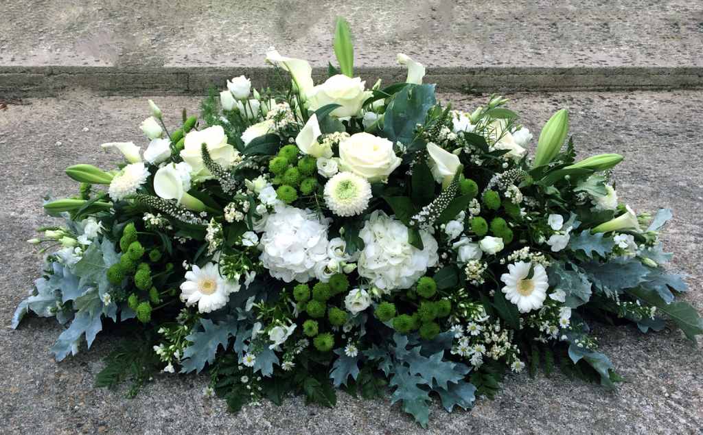 Raquette : hortensias blanches, lysentus blancs, aromes blancs, gerberas blancs