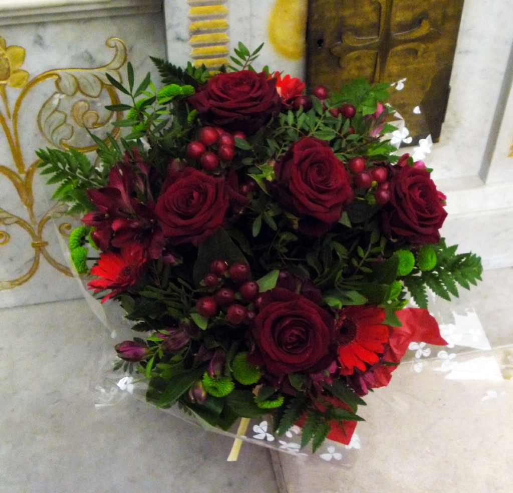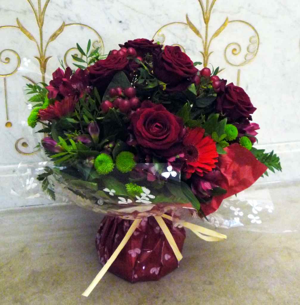 Bouquet bulle d’eau : roses rouges, gerberas rouges,